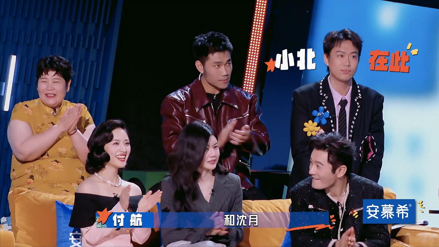 即使她笑的花枝乱颤的,心里应该是挺排斥的。毕竟她一个颜控,和小北这样的颜值表演这样一段,心里多少有点受了工伤的感觉吧!一开始他们表演的还可以,虽然不在状态,至少都能把这个台词顺下来,旁边的黄晓明也跟着在看热闹,直到小北喊了一声沈月。